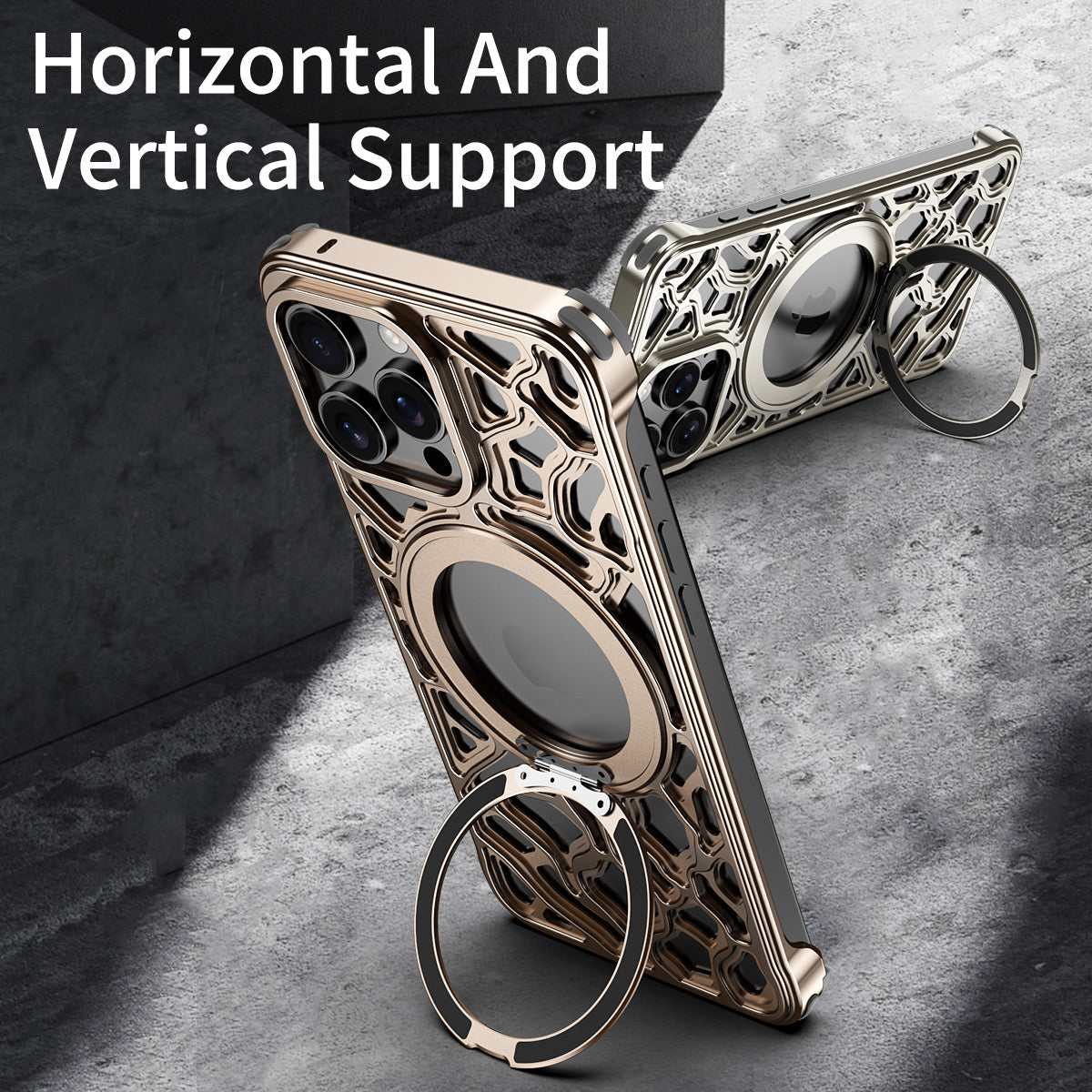 This irregular rock-inspired MagSafe case brings a unique blend of bold design and superior functionality. The frameless metallic structure ensures a sleek yet protective fit, while the built-in magnetic ring provides strong compatibility with MagSafe accessories.