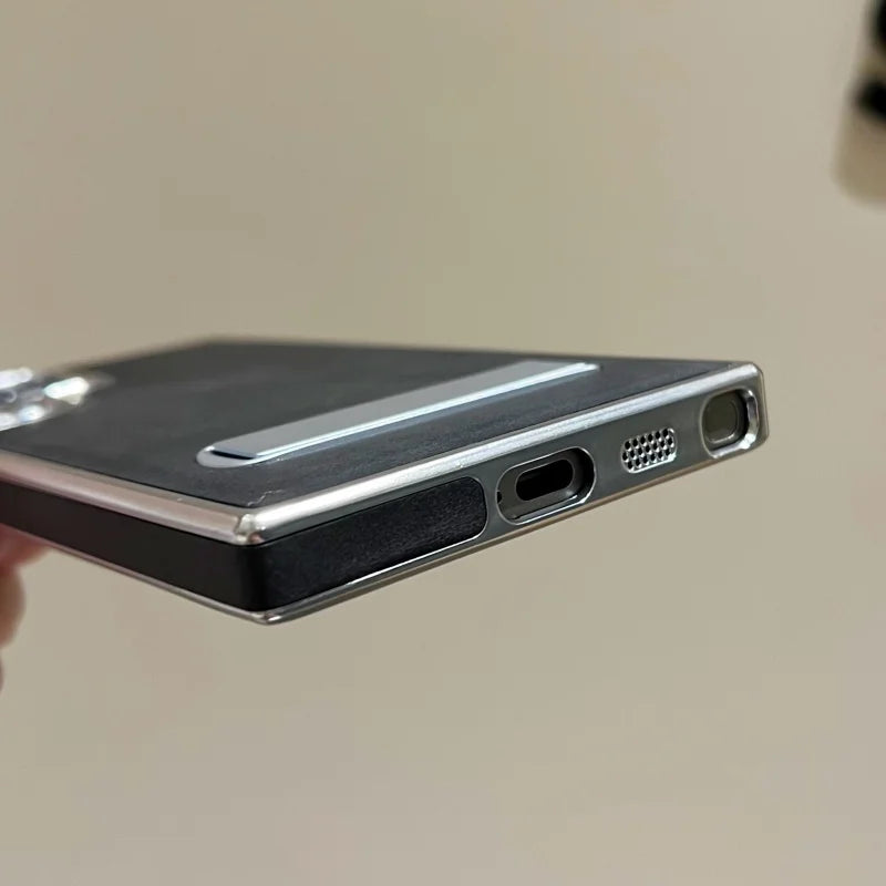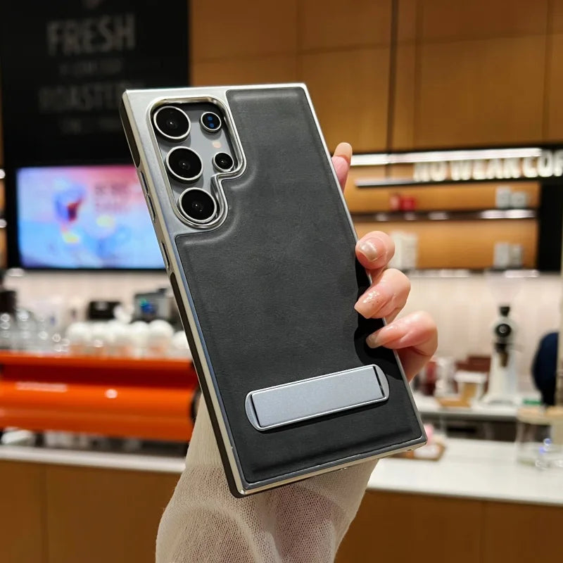 Elevate your phone's protection and style with the Premium Leather Armor Style Kickstand Case, designed for those who demand functionality and sophistication. This case combines premium craftsmanship with practical features to enhance your everyday mobile experience. Its sleek leather exterior exudes elegance, while the durable armor frame ensures maximum protection against drops and scratches. Perfect for professionals and minimalists alike, this case adds a touch of luxury to your device.