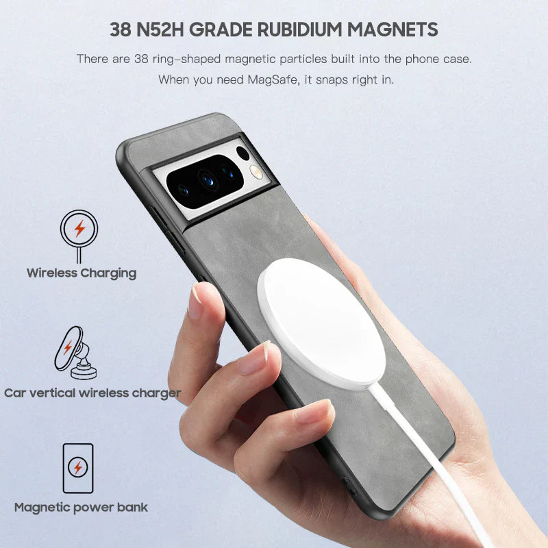 Upgrade your device with this premium MagSafe-compatible leather case, designed for both style and protection. Crafted with genuine leather, this case offers a luxurious feel while maintaining a durable and rugged build. The built-in MagSafe feature ensures seamless wireless charging, keeping your device powered without the hassle of cables. Engineered with shockproof protection, it guards against drops and impacts, while the sleek and ergonomic design provides a comfortable grip. Experience the perfect blend of elegance, innovation, and security.