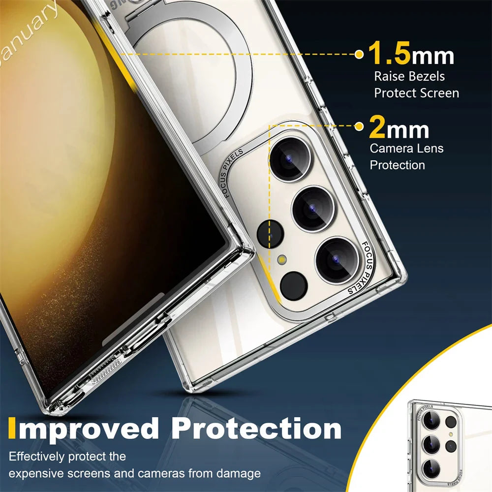 Premium Metal Magnetic Transparent Stand Case - Samsung