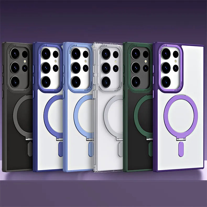 The Premium Metal Magnetic Transparent Stand Case offers a seamless blend of sophistication, functionality, and top-tier protection. Designed with premium materials and a sleek transparent finish, this case enhances the natural beauty of your phone while providing robust defense against everyday wear and tear.