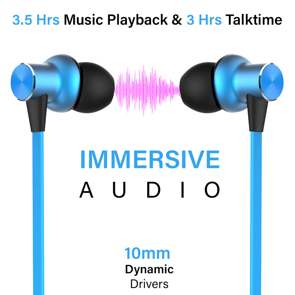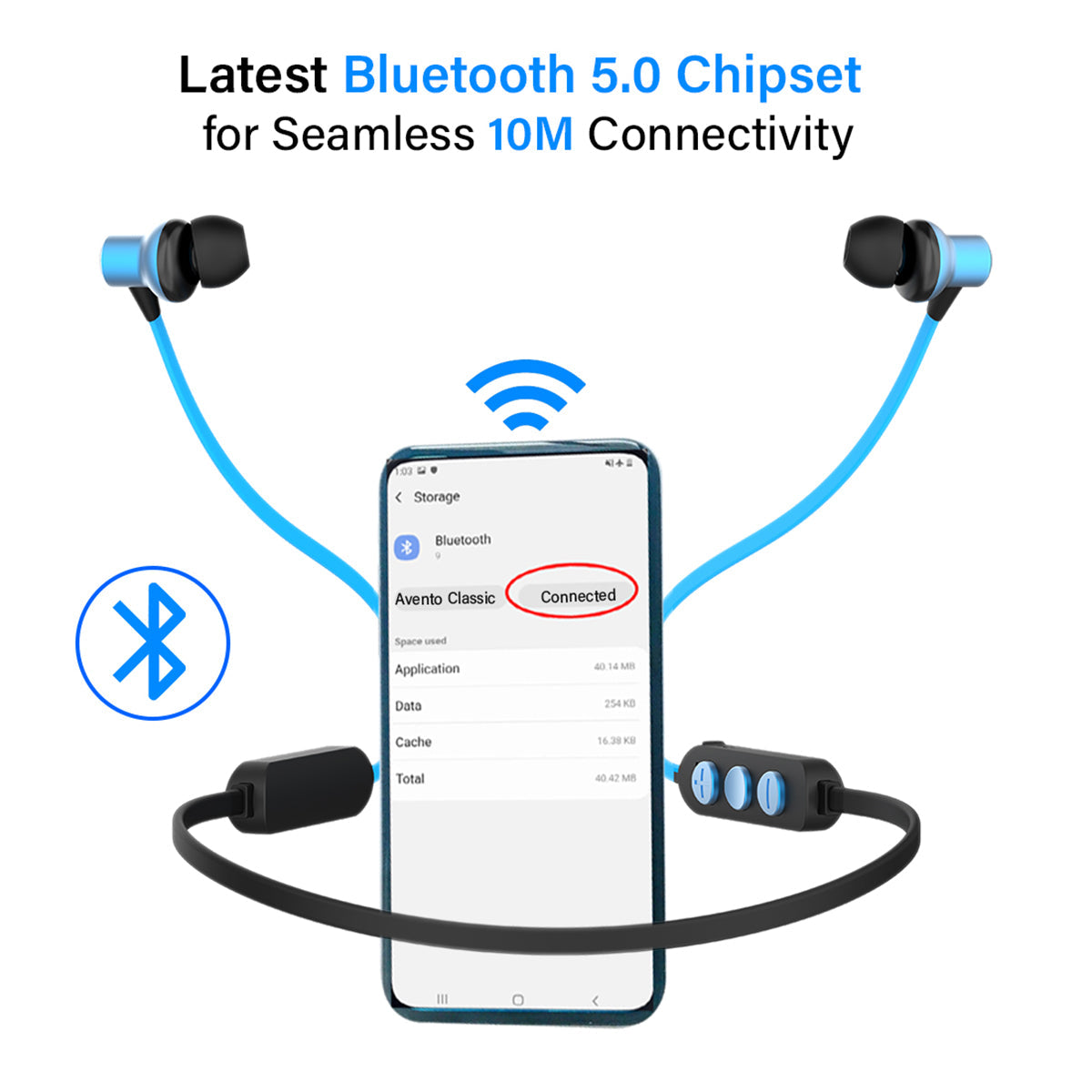 pTron Avento Classic Bluetooth 5.0 Wireless Earphones with Deep Bass & Voice Assistance - (Black/Blue)