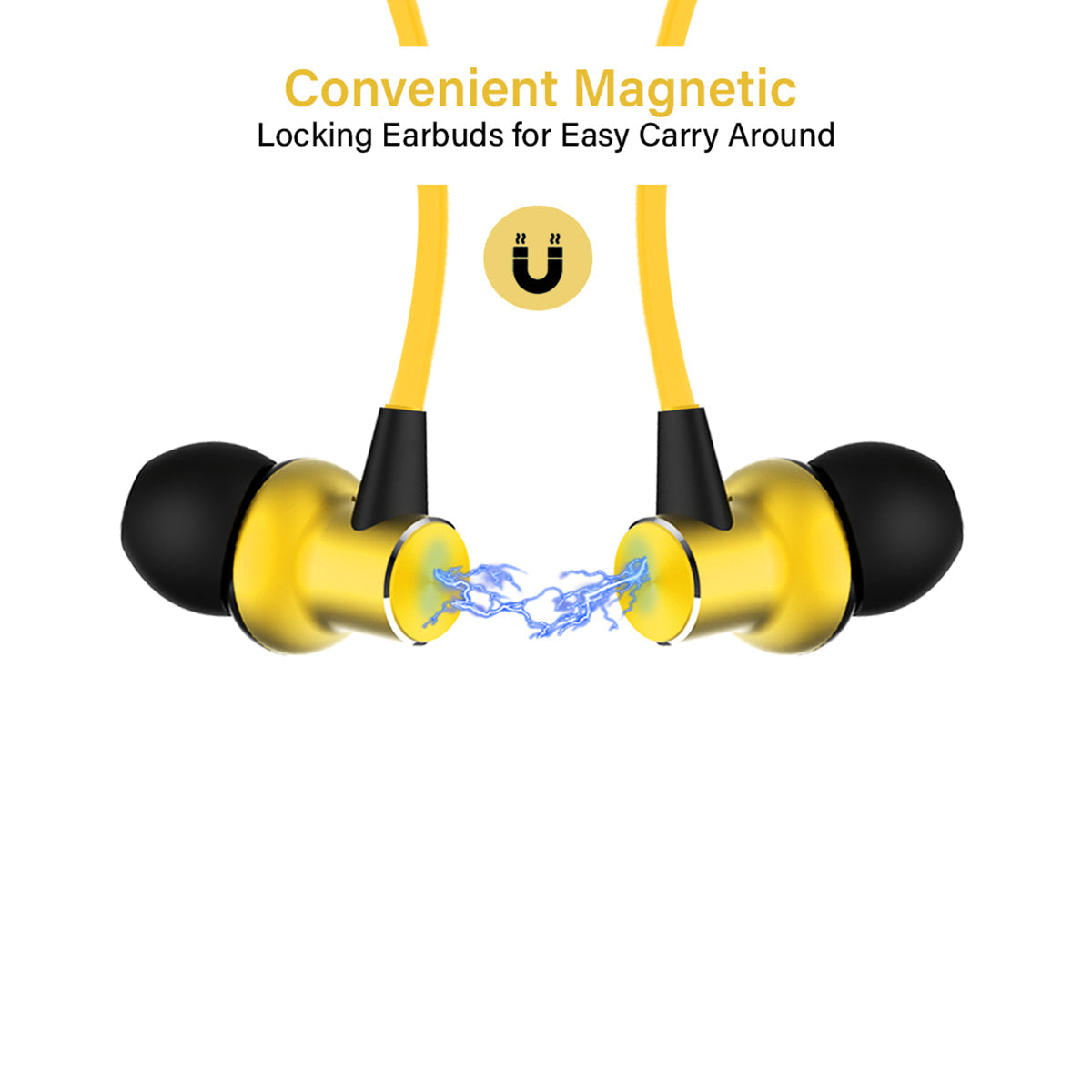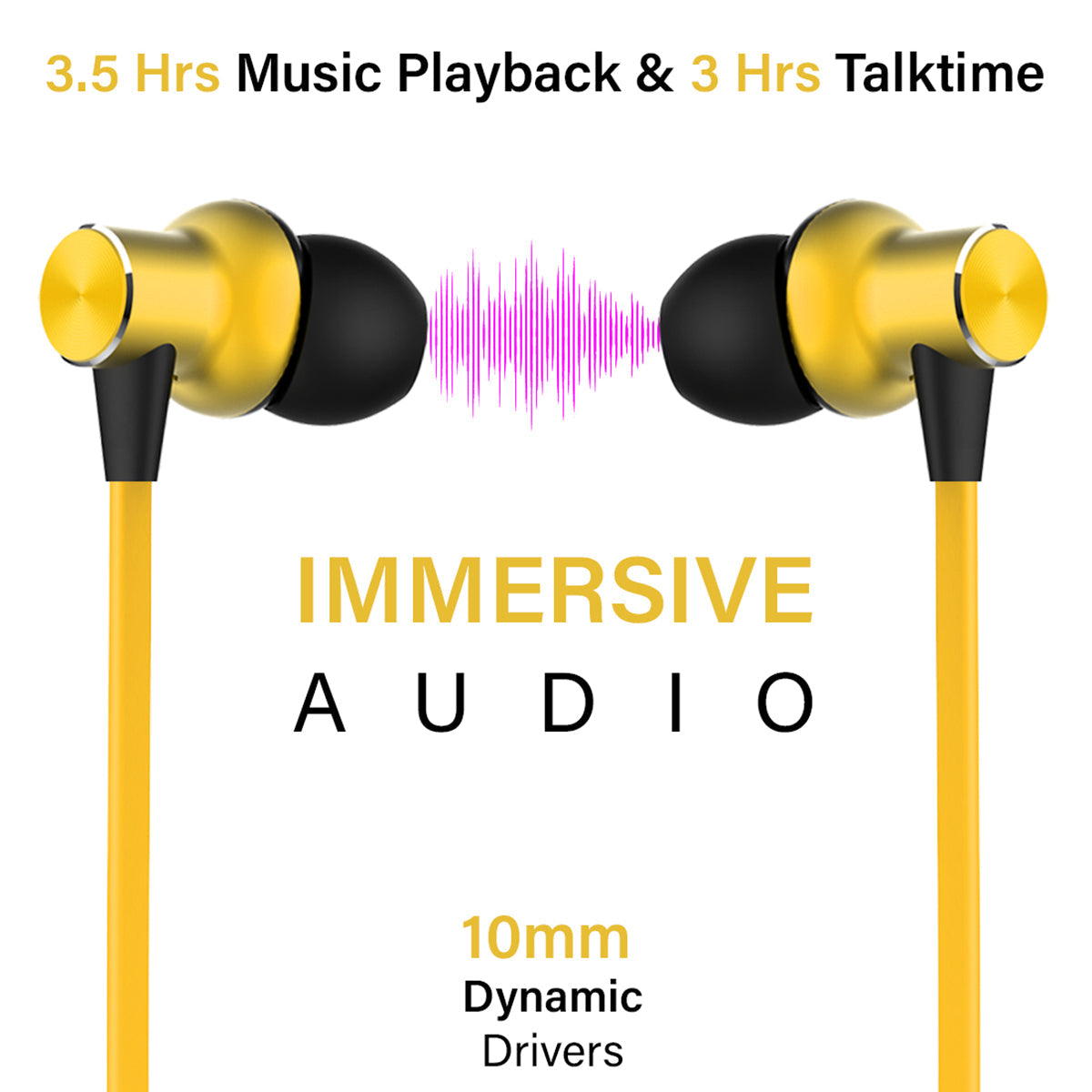 pTron Avento Classic Bluetooth 5.0 Wireless Earphones with Deep Bass & Voice Assistance - (Black/Yellow)