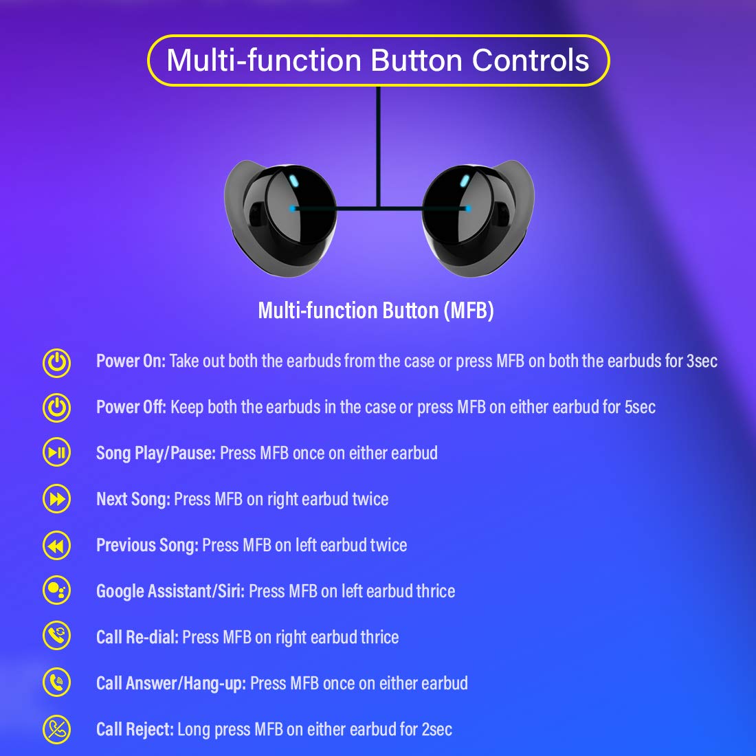 - Built-in Stereo Mic Ensures Clear Call Quality; On-the Earbuds Multi-function Buttons Allow Calls & Music Control for a Hands-free Experience