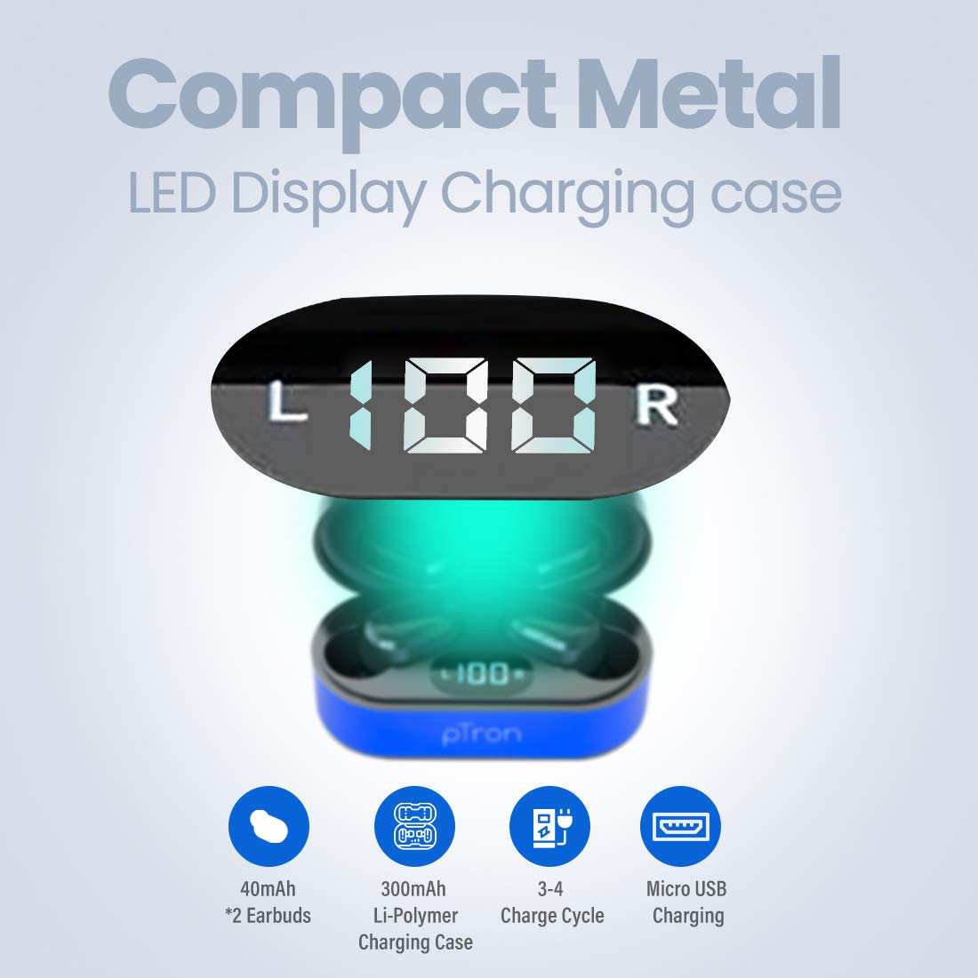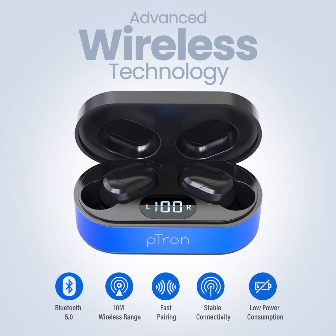 pTron Bassbuds Plus In-Ear True Wireless Stereo Headphones (TWS) with Mic - (Blue & Black)