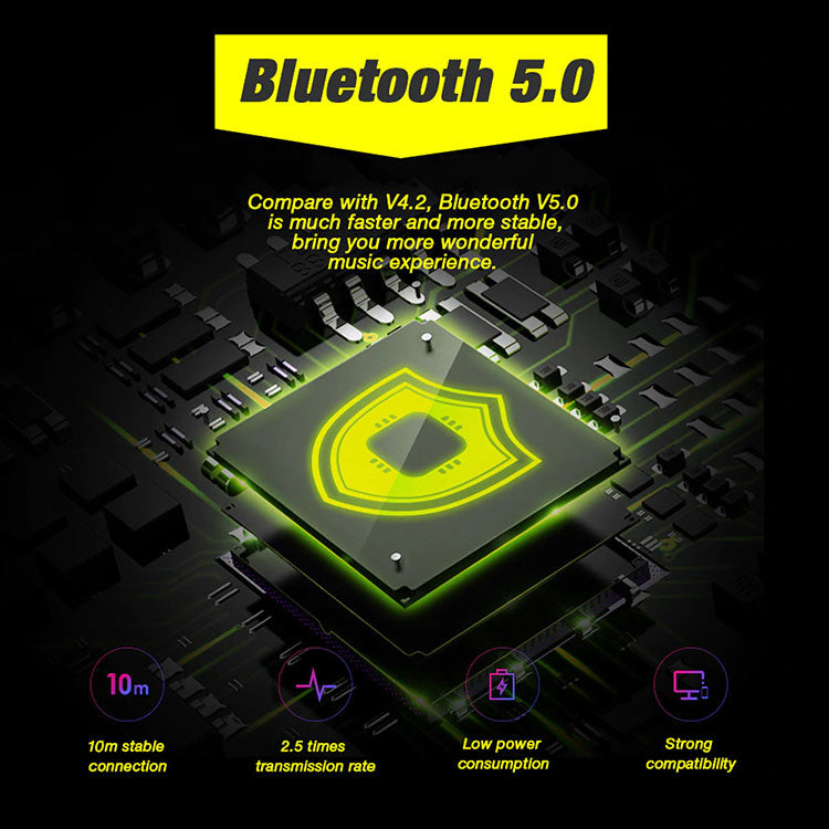 Advanced Bluetooth chipset ensures seamless wireless connectivity within the range of 10 meters, low battery consumption, & fast pairing.