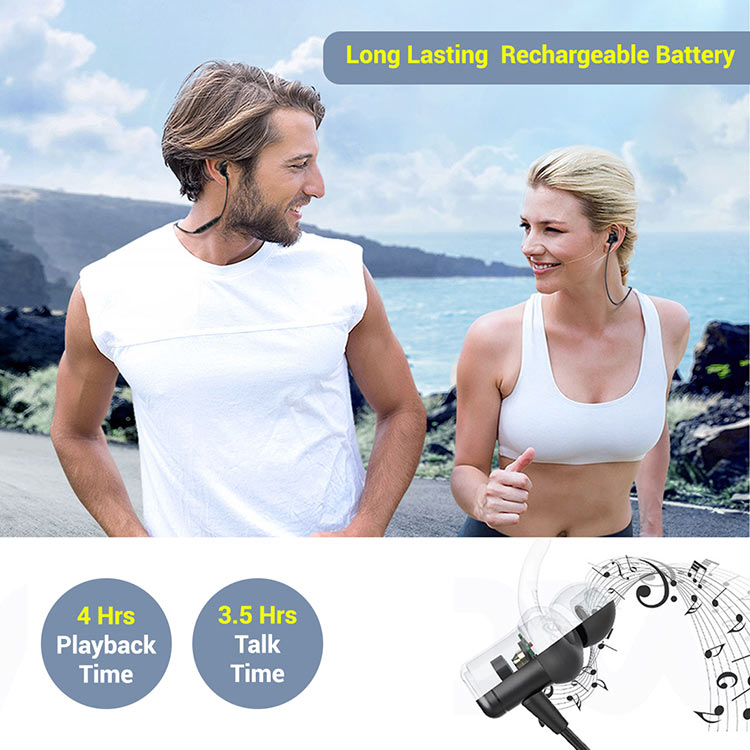 With Ergonomic lightweight design and silicone ear hooks, these Bluetooth headphones are secure in your ears and rest comfortably in the ear canal to guarantee fatigue-free and tangle free comfort.