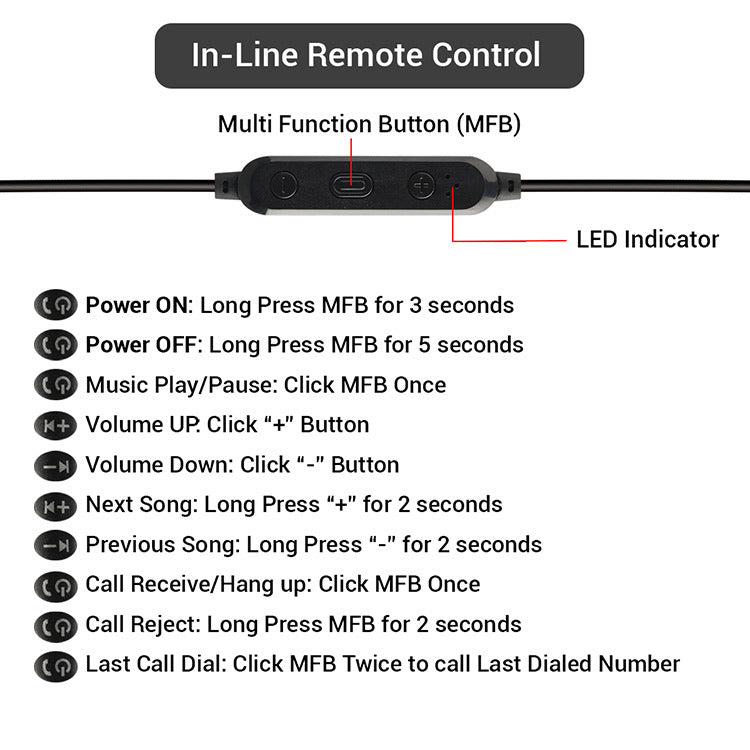 These wireless earphones with built-in microphone ensure hands-free music and call management. Just press the multi-function buttons on the in-line remote control.