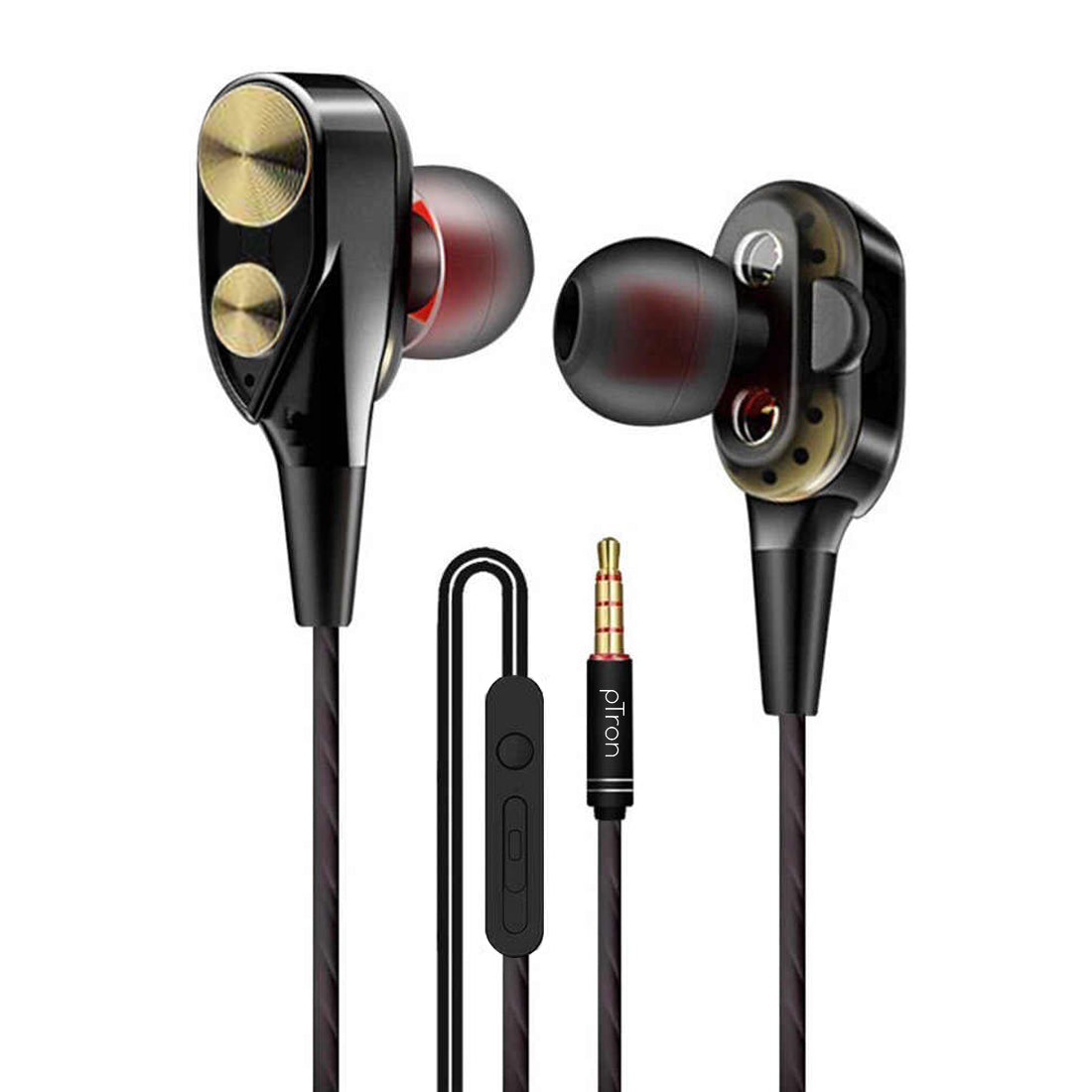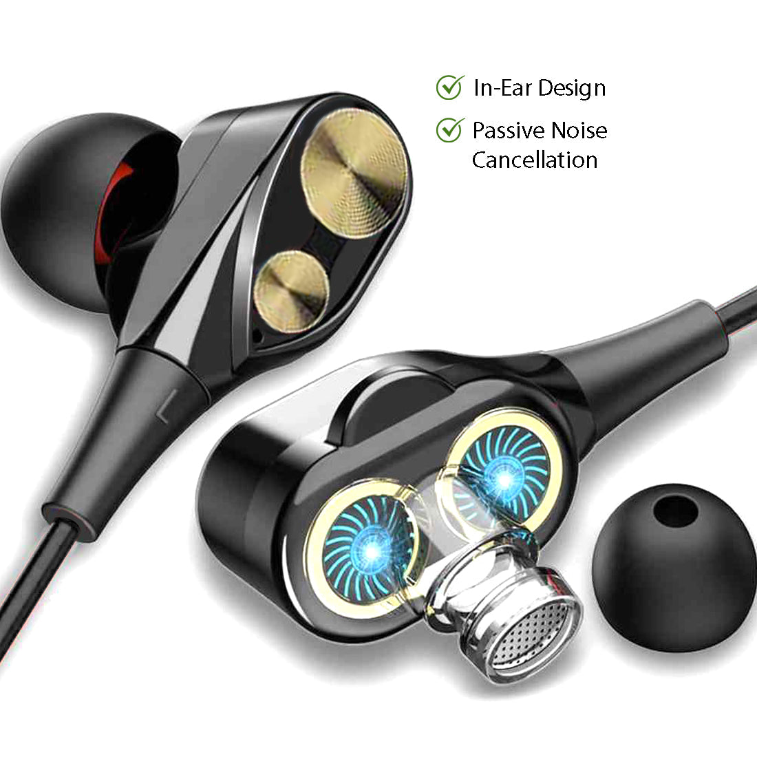 pTron Boom Duo Dual Driver In-Ear Stereo Sound Wired Headset with Mic - (Black & Gold)