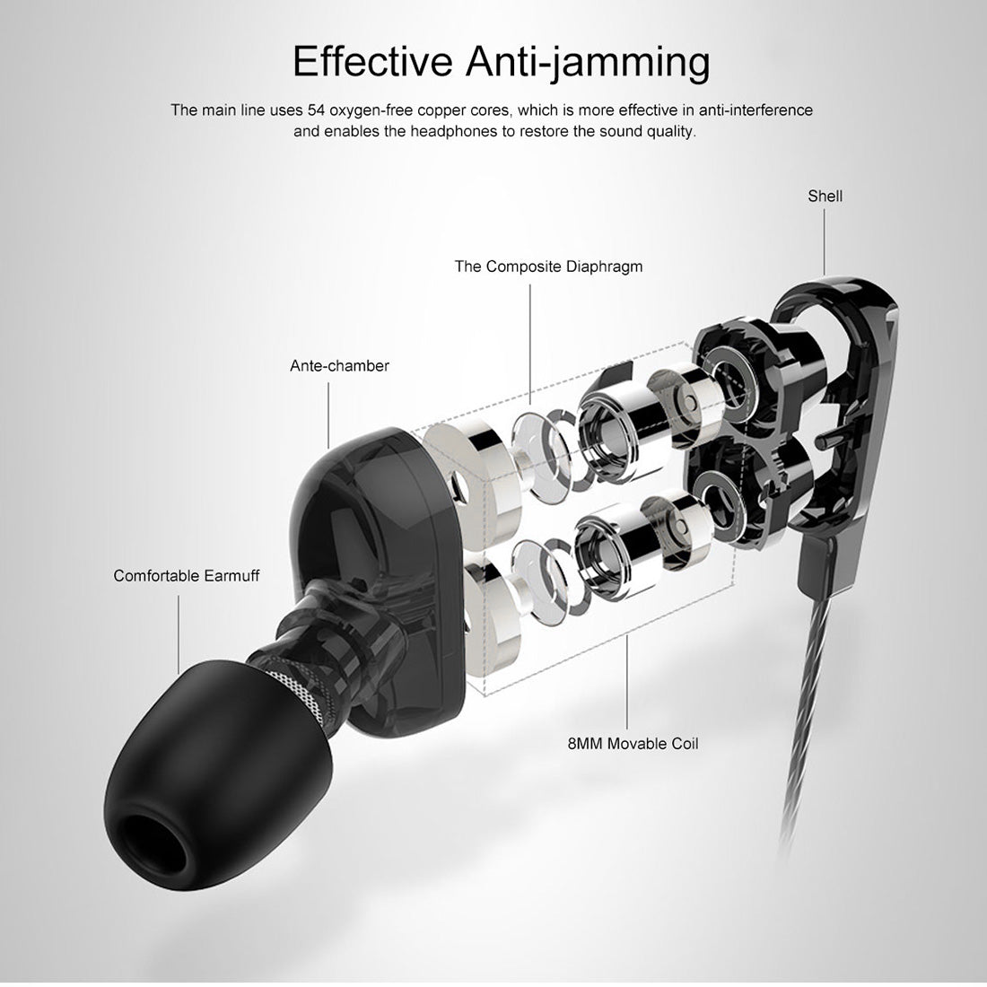 These high bass earphones with a microphone come with gold-plated audio jack and 1.2m tangle-free cable, covered by strong material of TPE, provides the slim and soft-touch feeling.