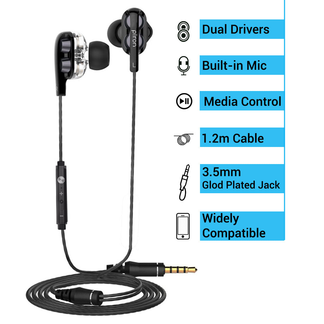 pTron Boom Ultima (Boom 3) earphones Dual drivers enhance your music with high-fidelity audio for better sound than ever, achieve the kind of audio clarity mono-driver headphones simply cannot provide.