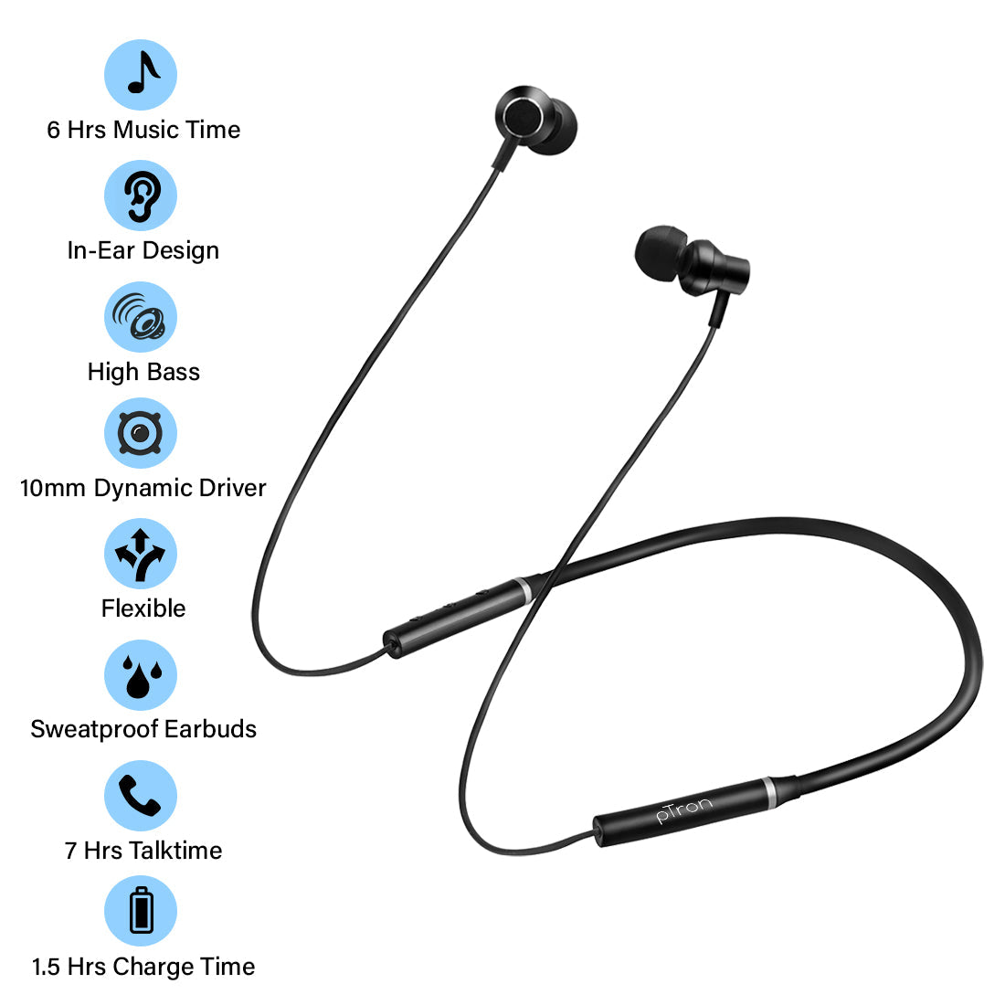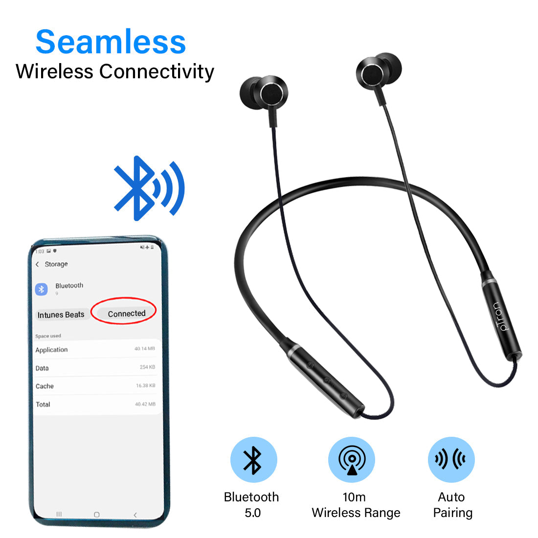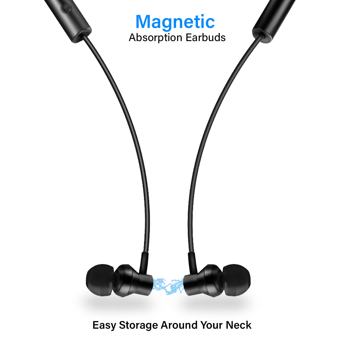 pTron InTunes Beats In-Ear Magnetic Stereo Wireless Neckband with Mic - (Black)