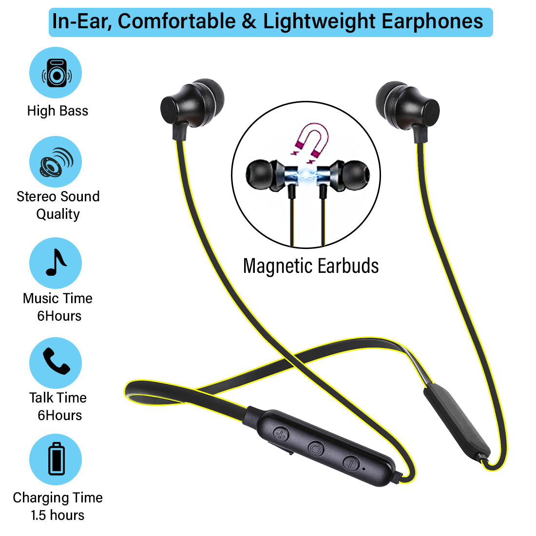 pTron InTunes Lite High Bass In-Ear Wireless Headphones With Mic - (Black/Yellow)