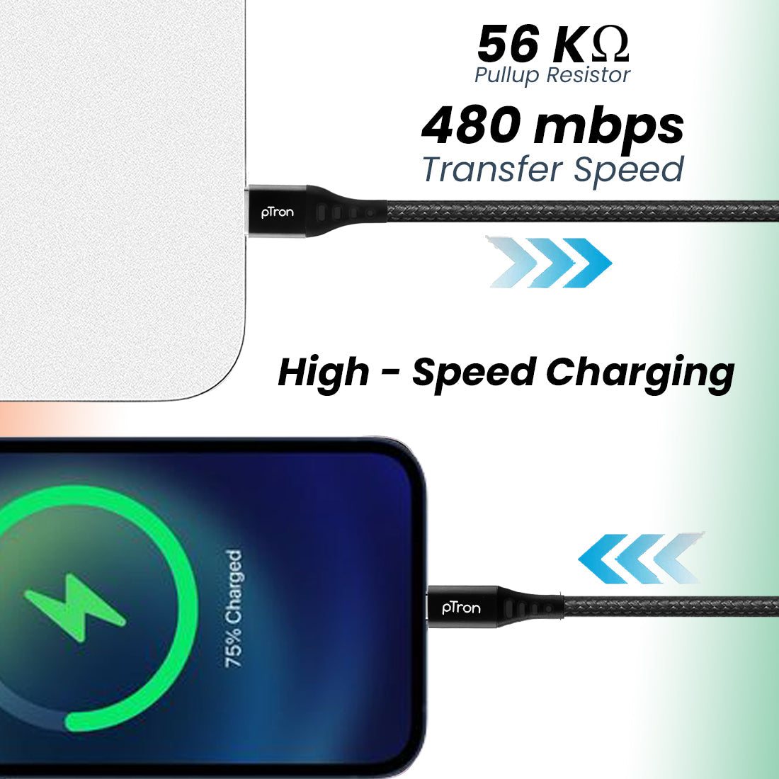 - Perfect Fit Connectors: pTron Soler USB-C has passed the 5KG load test, swing test, 5000+ times connect & disconnect to ensure that there are no loose connections.