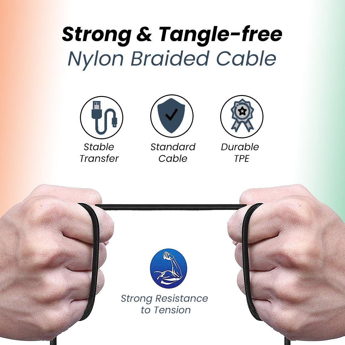 pTron Solero TB301 3A Type-C Data & Fast Charging Cable, Made in India, 480Mbps Data Sync, Strong & Durable 1.5 m Nylon Braided USB Cable for Type-C Devices - (Black)