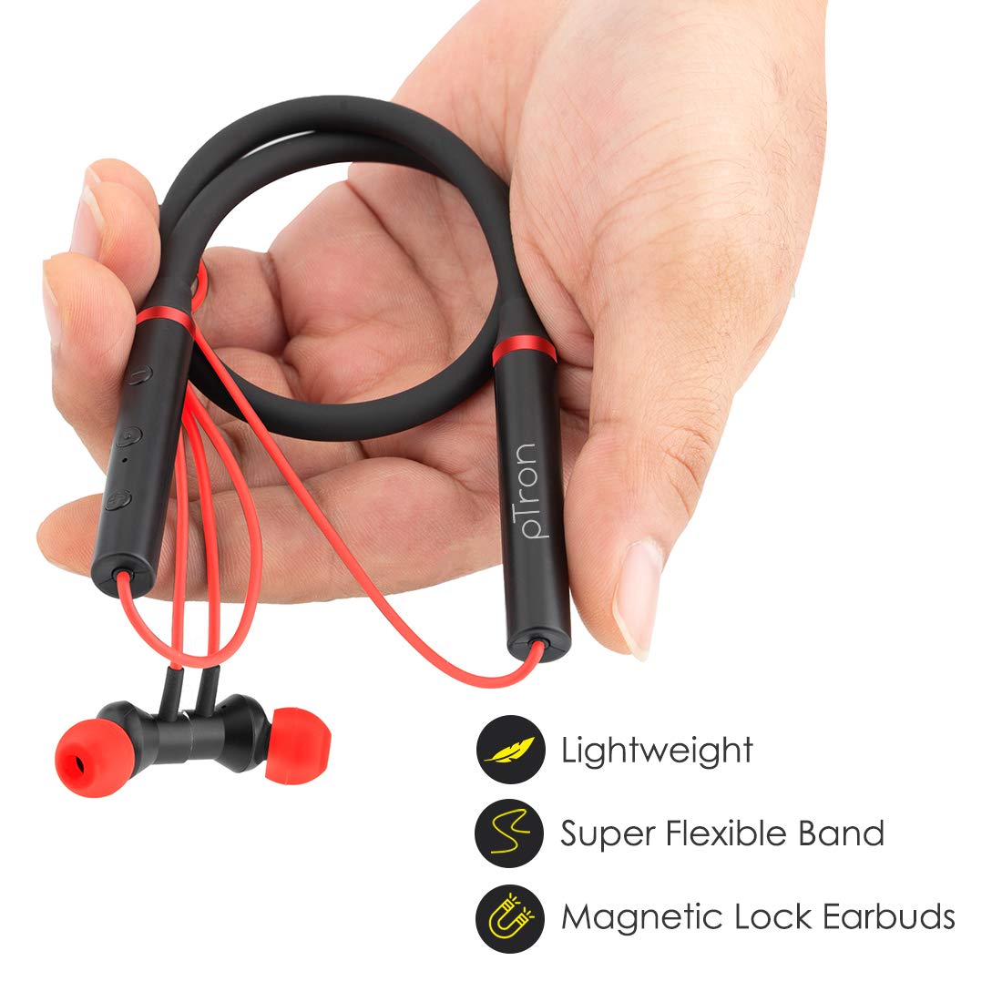 pTron Tangentbeat Magnetic In-Ear Wireless Bluetooth Headphones with Mic - (Black & Red)