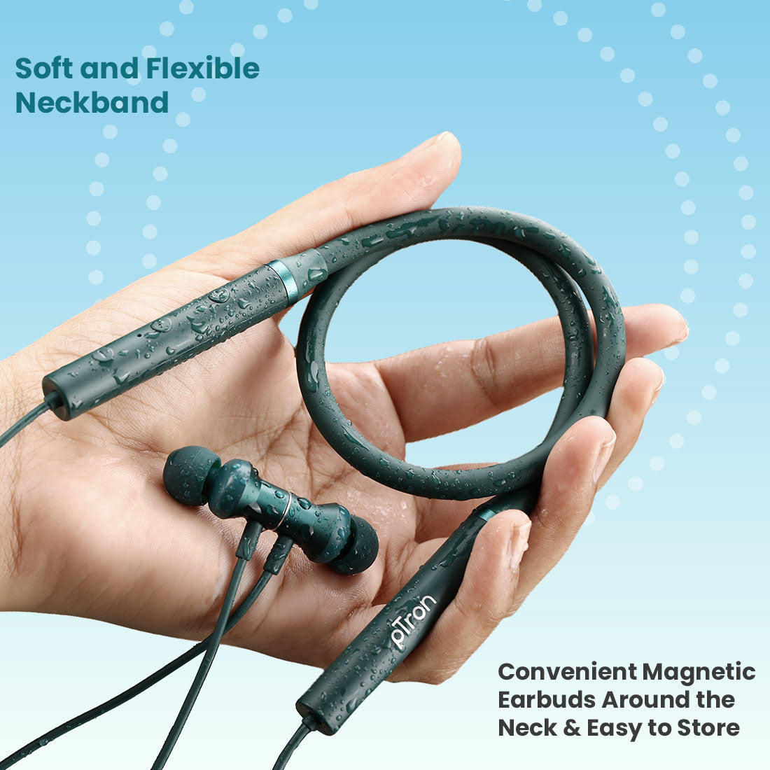 pTron Tangentbeat Magnetic in-Ear Wireless Bluetooth Headphones with Mic - (Dark Green)