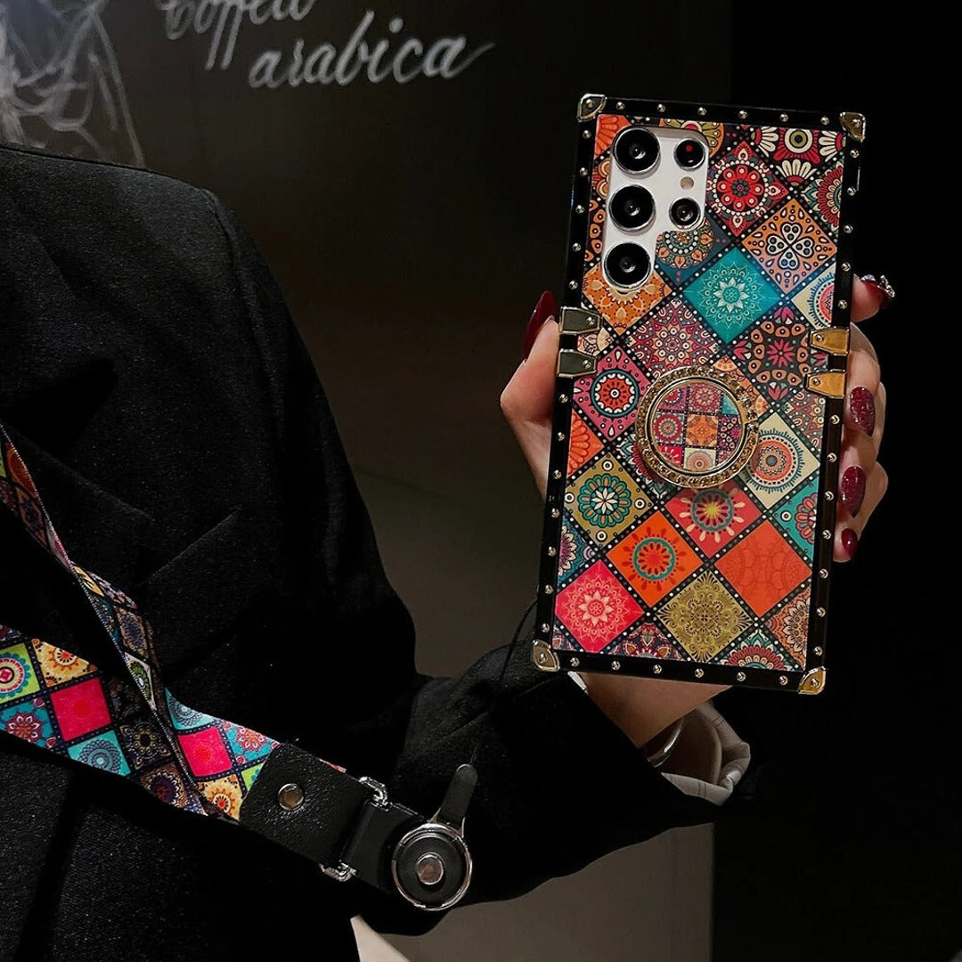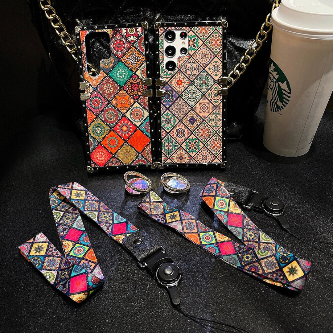 Elevate your phone game with our Retro Boho Lanyard Bracket Case for Samsung. Embrace the bohemian style while keeping your phone securely attached with the lanyard. Take hands-free selfies and access your phone with ease. Stay stylish, stay connected. Get yours now!