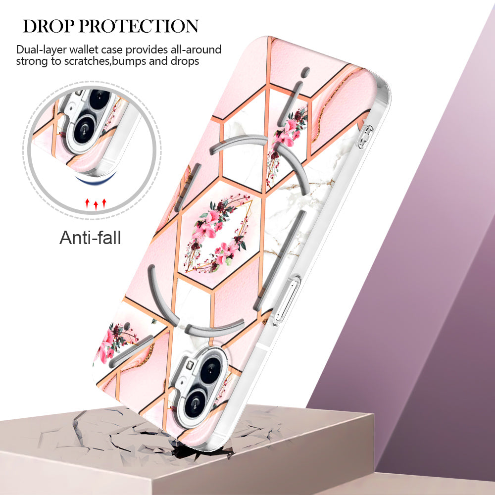 Experience unbeatable protection with this stylish Rugged Geometric Marble Floral Case designed specifically for the Nothing Phone. Combining a stunning floral marble pattern with geometric accents, this case not only looks great but is built to endure.