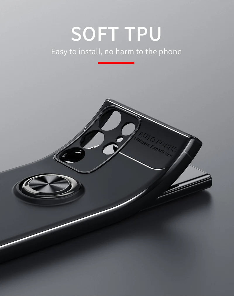 Integrated Metal Ring Holder: The built-in metal ring holder offers a secure grip for device and doubles as a kickstand for hands-free viewing in landscape mode.