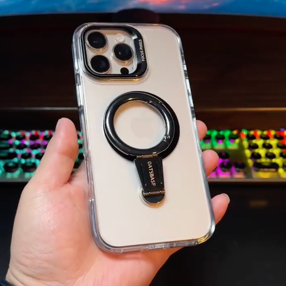 This slim and transparent case combines modern aesthetics with versatile functionality. Equipped with a magnetic rotating ring holder, it offers a secure grip and a convenient stand for hands-free viewing. Its durable yet lightweight design ensures full protection without compromising on style or comfort.