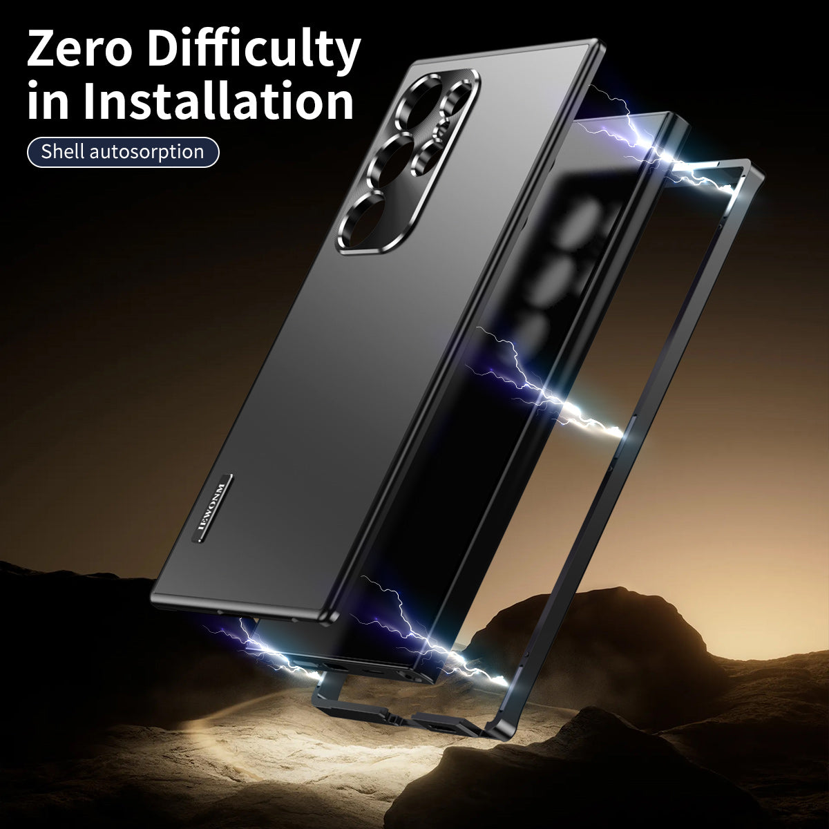 The Metal Frame Lens Protection Case Case combines robust durability with a sleek design. Crafted with a sturdy metal frame and advanced lens protection, it ensures your phone stays safe from drops, scratches, and other impacts. The magnetic closure system adds an extra layer of security and convenience.