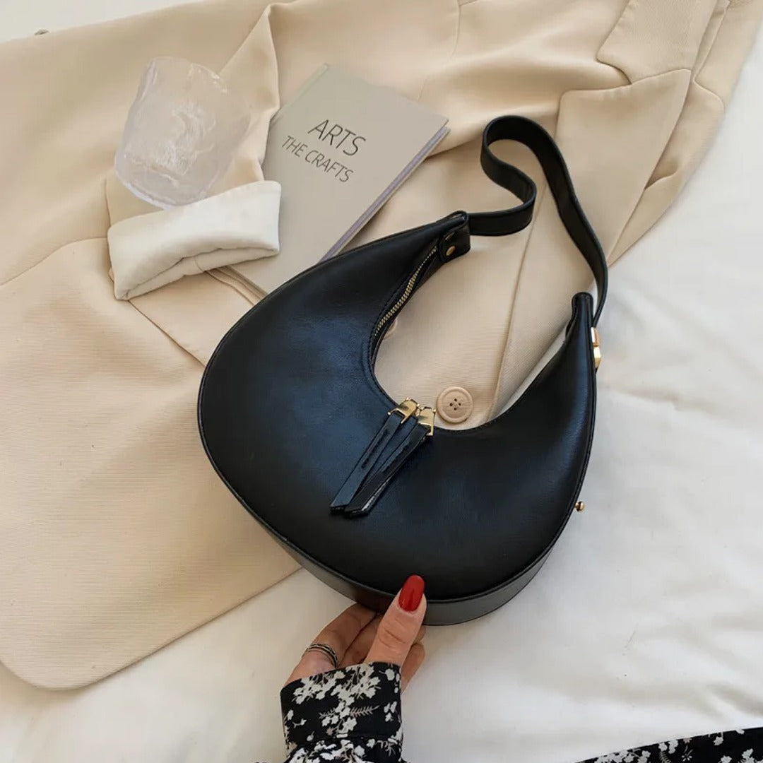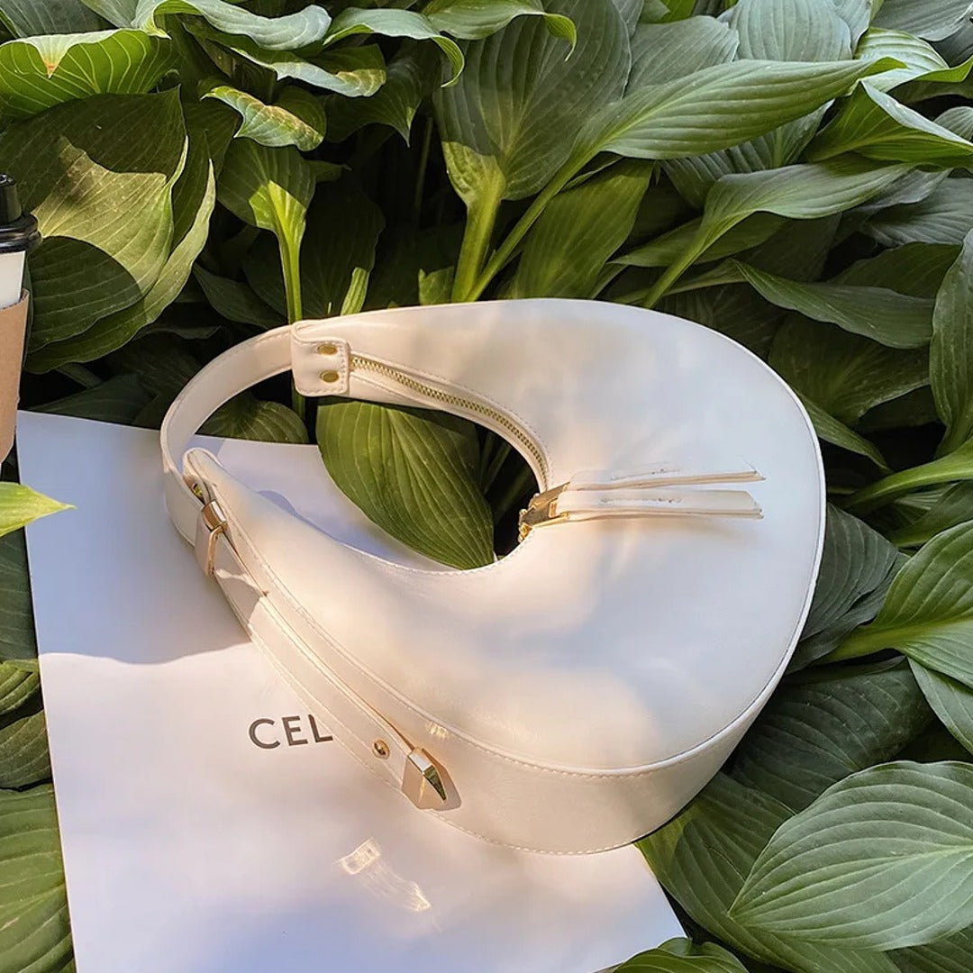 Introducing the Stylish Crescent Curve Bag - a must-have accessory that combines fashion and functionality. With its unique crescent shape, it adds a touch of sophistication to any outfit. The spacious interior and convenient pockets make it perfect for carrying all your essentials effortlessly. Elevate your style and stay organized with this trendy bag.
