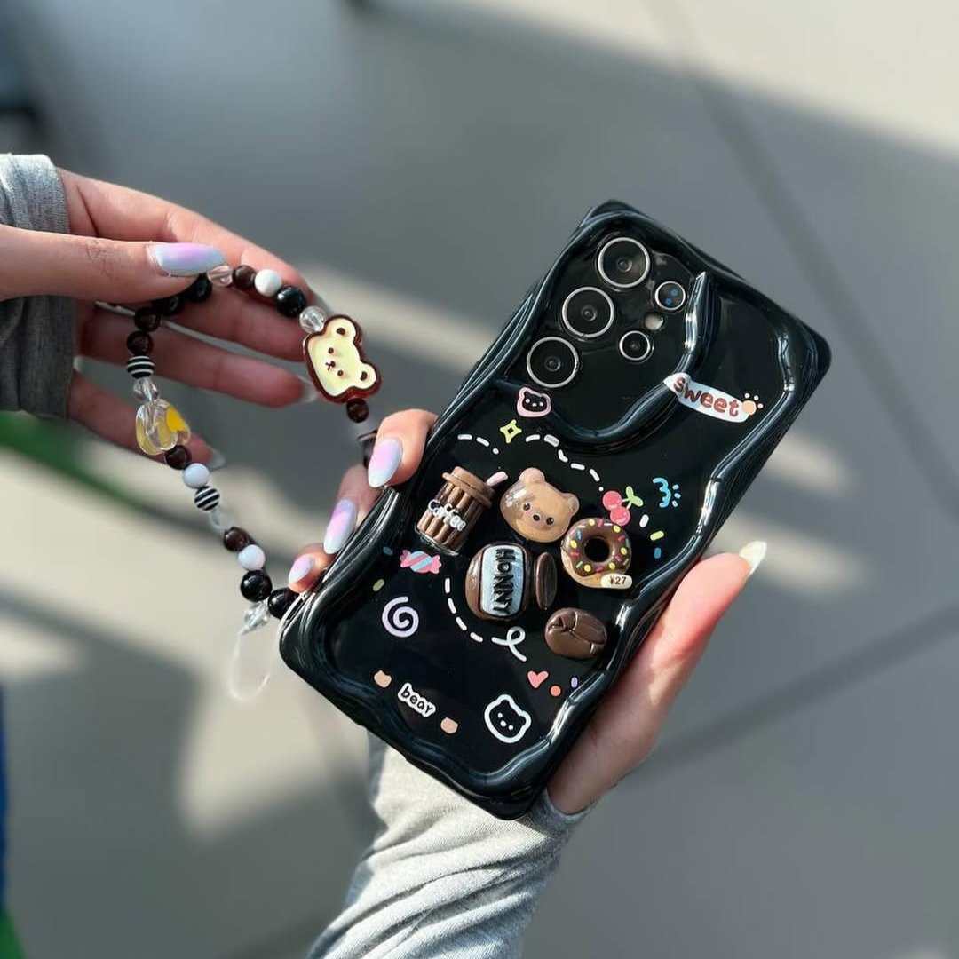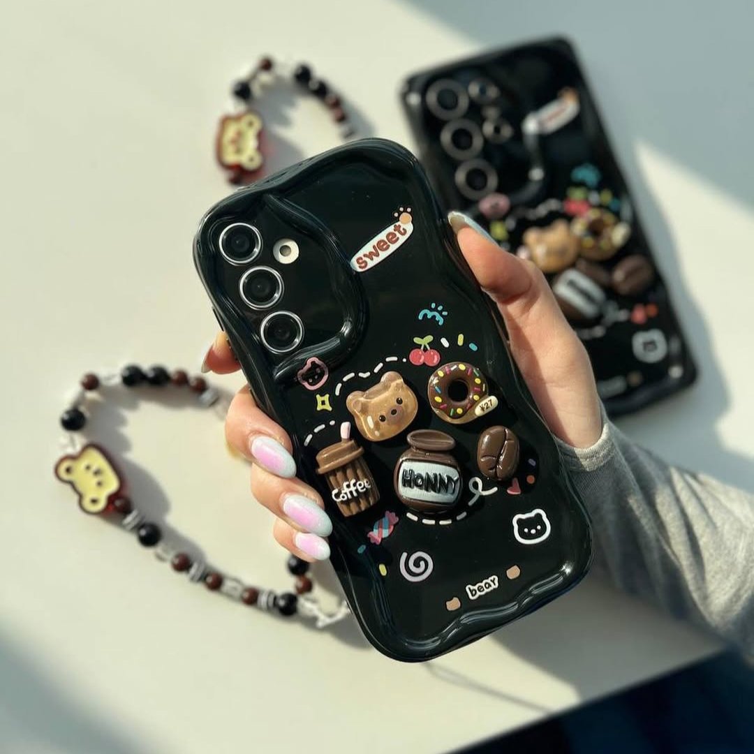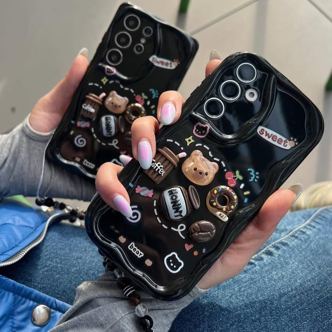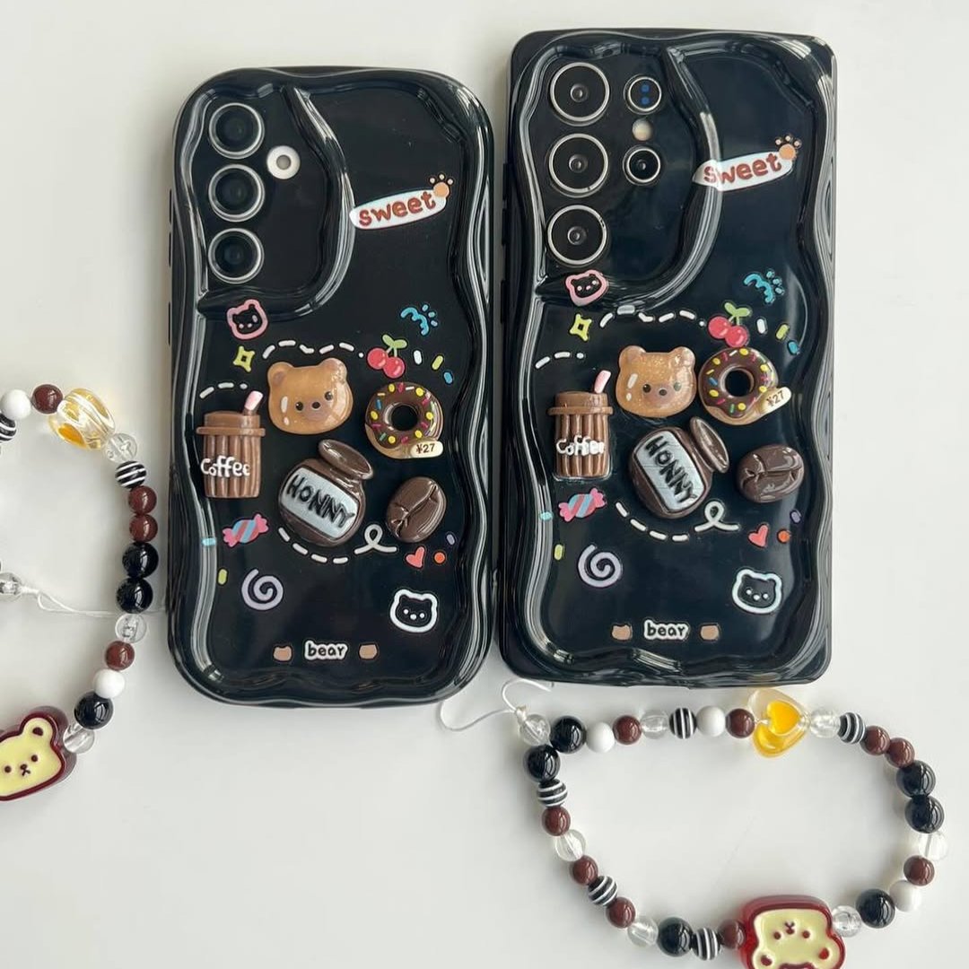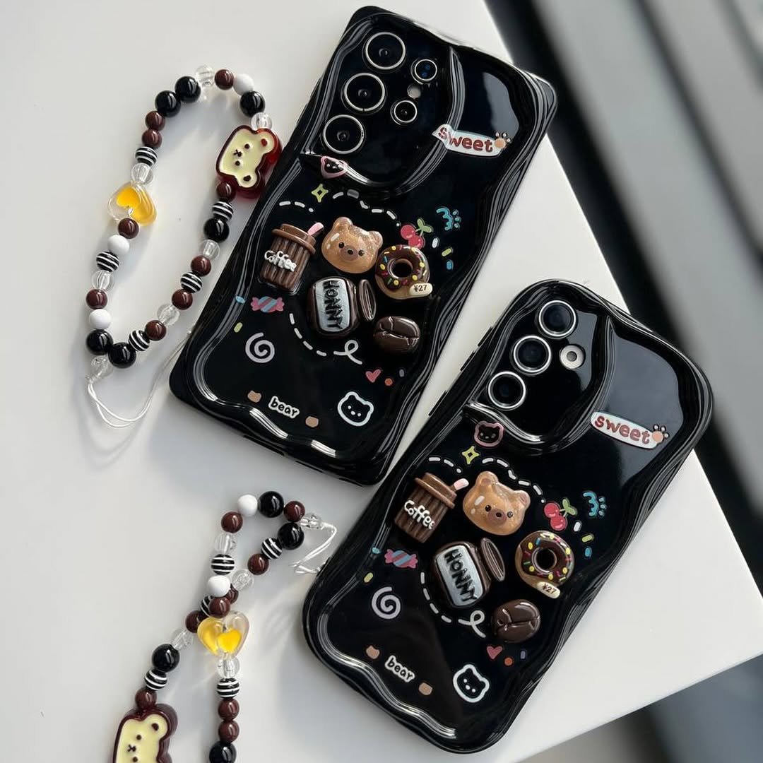 Satisfy your sweet tooth with the Sweet Bear Case with Charm! This adorable phone case features a cute bear design surrounded by delightful 3D-shaped sweets like coffee cups and chocolates, adding a playful and unique touch to your device.