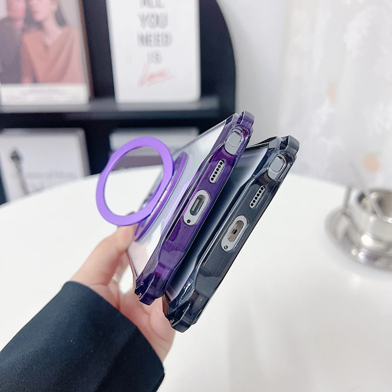 Elevate your Samsung experience with the Transparent 360° Rotating Kickstand MagSafe Case. Designed for versatility and protection, this case offers a crystal-clear back that showcases your phone’s sleek design while adding functionality with its built-in kickstand and MagSafe compatibility. The rotating kickstand offers multiple viewing angles, perfect for video calls, streaming, or reading on the go.