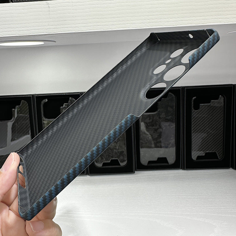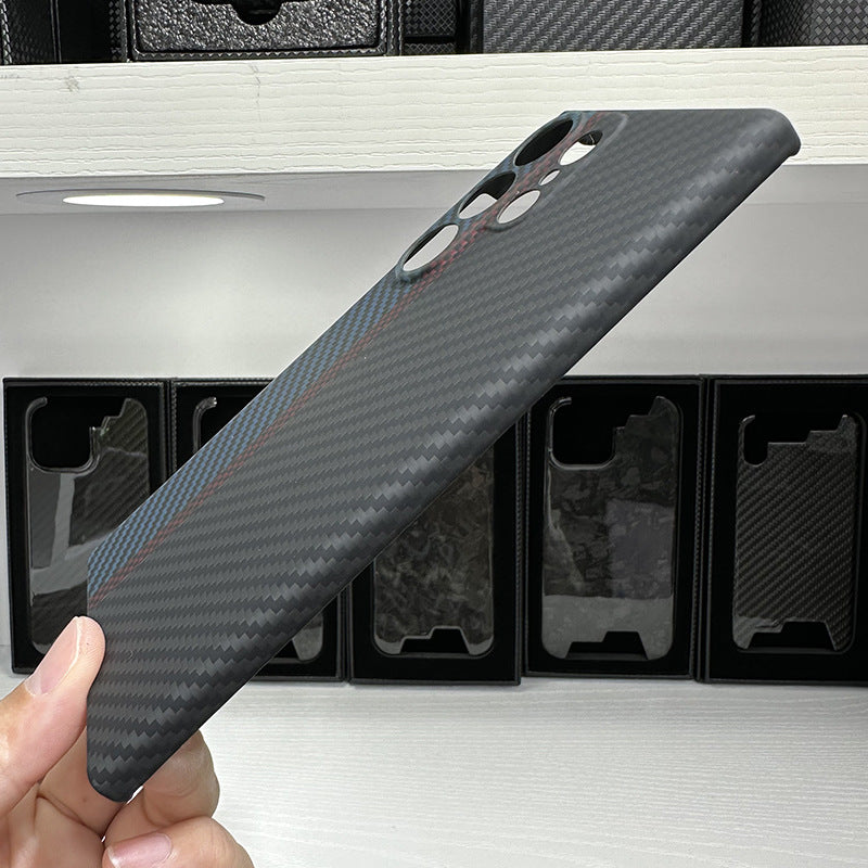 Introducing the Tri-Color Aramid Fiber Hard Case, a perfect blend of style, durability, and advanced protection for your mobile device. This case is crafted from premium aramid fiber, known for its exceptional strength and lightweight properties.