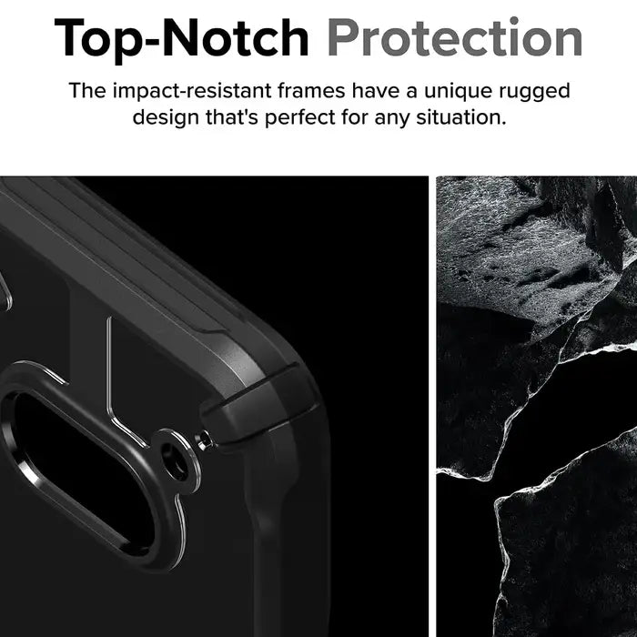 Elevate your phone's defense with the Ultimate Fusion X Armor Case. Military-grade protection meets sleek design in this dual-layered shield. Enjoy a secure grip, precise access to ports, and wireless charging compatibility. Raised edges safeguard your screen and camera, all wrapped in a stylish package.