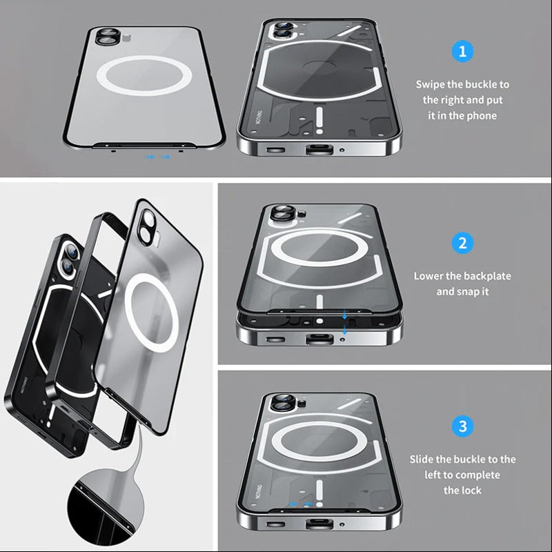 Introducing the Ultra Thin Metal Glass Magnetic Case - Nothing, a minimalist marvel that seamlessly blends style and functionality. Crafted with precision and innovation, this case redefines sleekness with its ultra-thin profile and minimalist design.