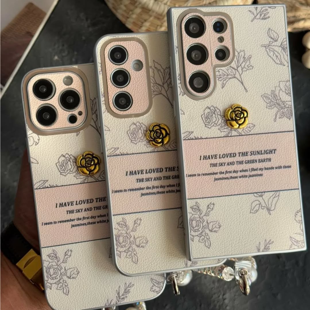 This case brings elegance and charm with its delicate floral pattern and striking gold rose embellishment. The quote adds a poetic touch, making it perfect for those who love beauty and meaning in their accessories.
