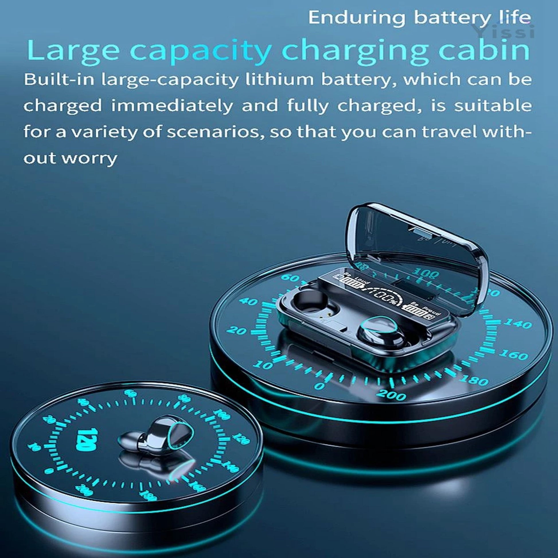 2000mAh LED Charging Case: The earbuds come with a sleek 2000mAh LED charging case, combining style and functionality. The LED feature adds a touch of sophistication while keeping you informed about the charging status.