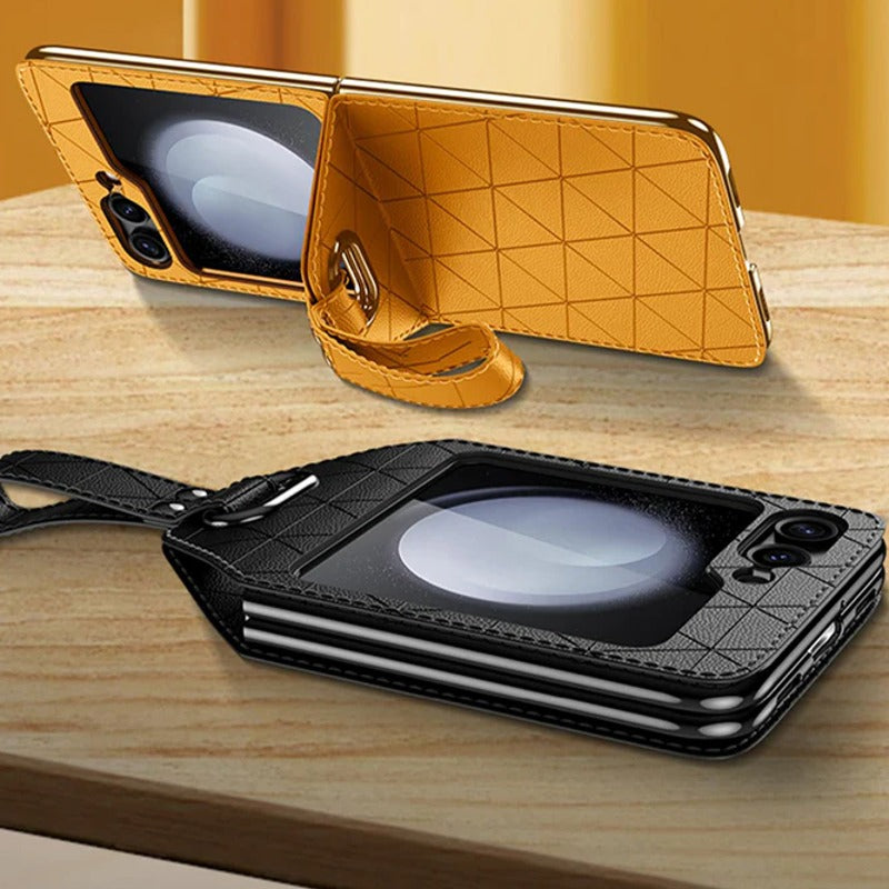 Introducing the Wristband Rhombus Leather Case for Samsung, a stylish and functional accessory designed to elevate your device experience. Crafted with precision and attention to detail, this case seamlessly combines fashion with practicality, offering both protection and convenience.